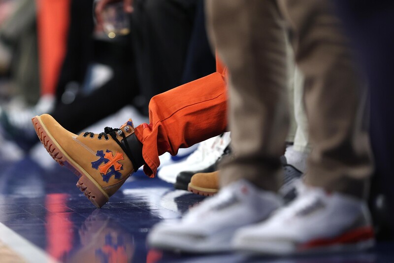 提摩西夏勒梅(Timothée Chalamet )身为纽约尼克队铁粉,早已是NBA场边的明星焦点,他甚至带着女友凯莉珍娜(Kylie Jenner)一起坐在最前排,两人为应援尼克队特别挑选蓝橘配色装扮,Kylie搬出蓝色爱马仕凯莉包替行头增加华丽亮点,Timothée则是穿着全套的橘蓝拼接Chrome Hearts套装,连鞋子也是Chrome Hearts与Timberland的联名款,精心搭配只为给心爱的球队加油,成为了场边的时尚小插曲。