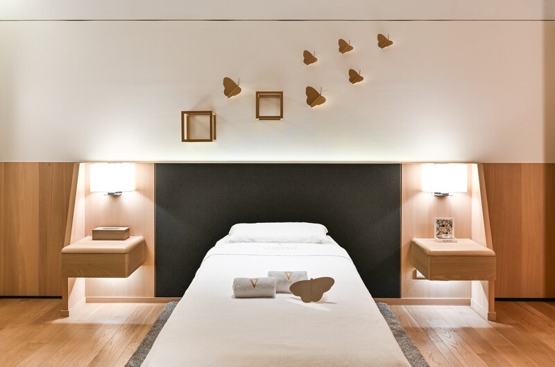 LA PRAIRIE莱珀妮 远东SOGO台北忠孝馆 全球形象概念护肤中心 由瑞士建筑师Stana Pijunovic团队操刀设计,打造La Prairie私人谘询室与护肤空间,选用义大利进口百万手工皮製护肤床,为顾客提供更顶级的私人服务。为了让顾客能在疗程中彷若置身瑞士净土,品牌将山景、森林与湖景的气息封存于香氛精油中,让顾客挑选自己所喜爱的景色气息,透过吸嗅,开启整套奢华美容护理。值得一提的是La Prairie的所有护肤疗程,皆採用源于瑞士的独家手技按摩,以深度安抚及穴点指压的护肤手法,发挥保养的活性功效。